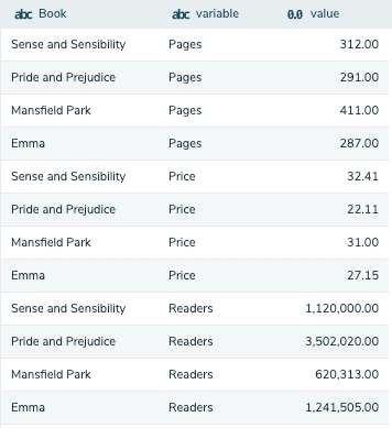 Unpivot takes many columns in a table and lines them up into a single column called "value". A new column will be created called "variable", which holds the value of the column header in the original table.